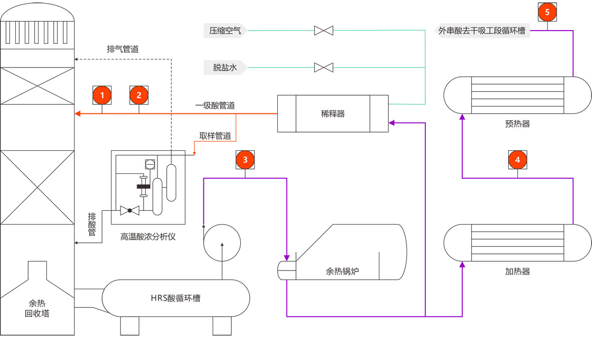 這些設備適用于多種測量位置,包括制水再生、干燥酸濃度測量、一吸酸濃度測量、二吸酸濃度測量、成品酸濃度測量以及余熱回收系統中的酸濃度測量。