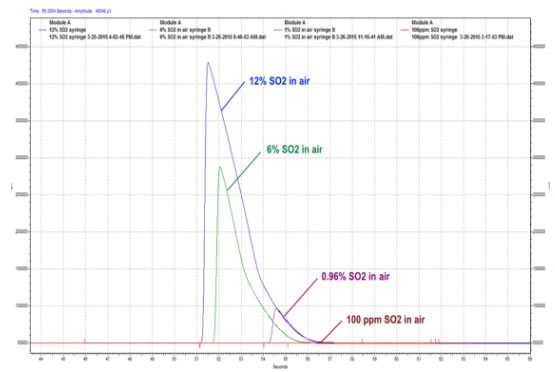 轉化率譜圖清晰展示進、出口SO?峰形與保留時間