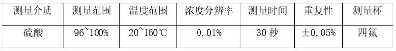 2、從取樣瓶中量取30mL硫酸樣品,倒入測量杯中,并蓋好測量杯蓋子。隨后,將測量杯放入便攜式分析儀的測量孔內,并插入溫度計信號線。分析儀顯示屏將顯示溫度,等待約10秒,待酸濃度穩定后讀取數值。